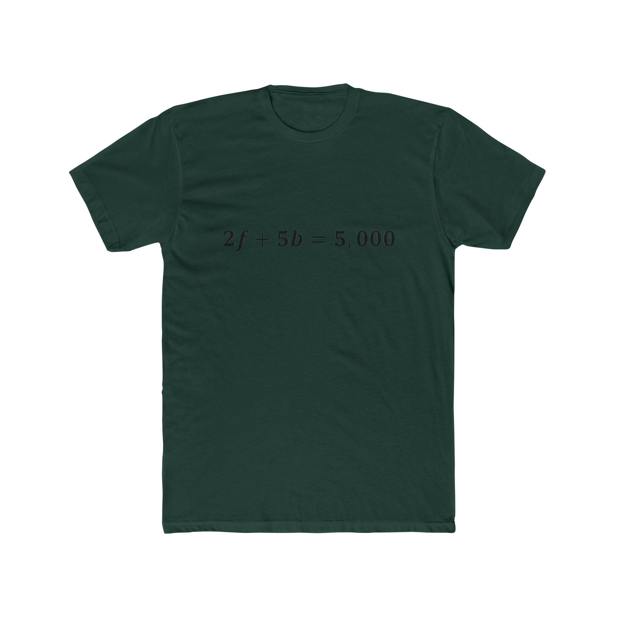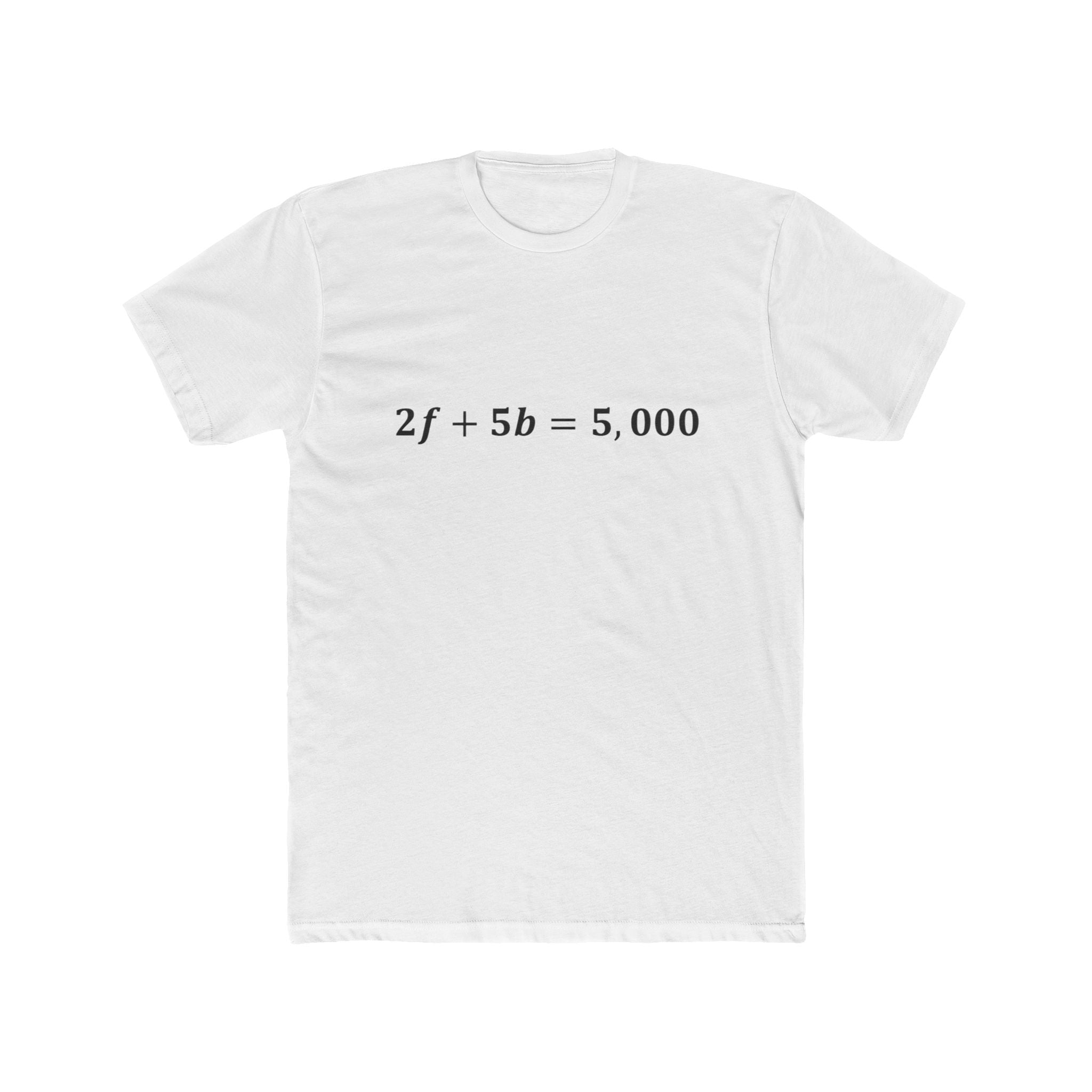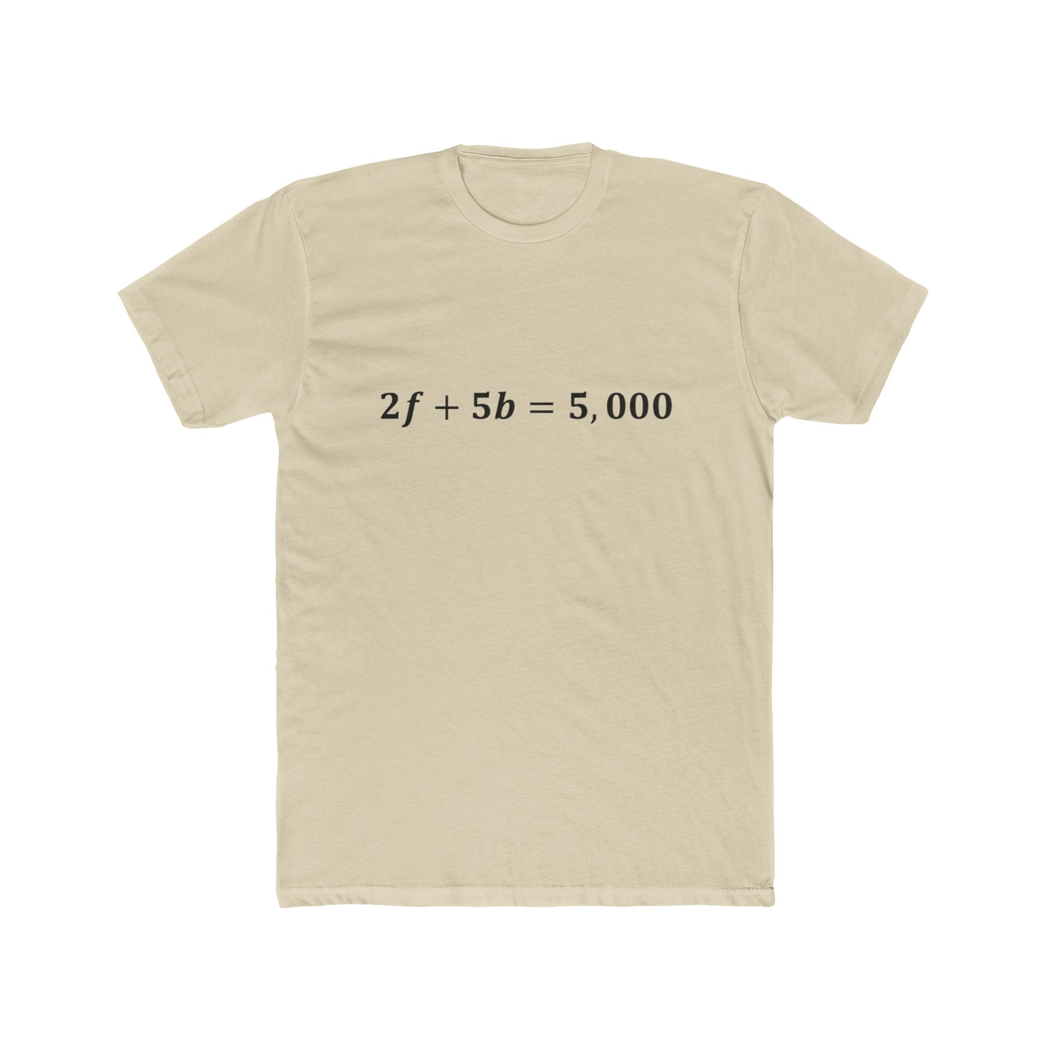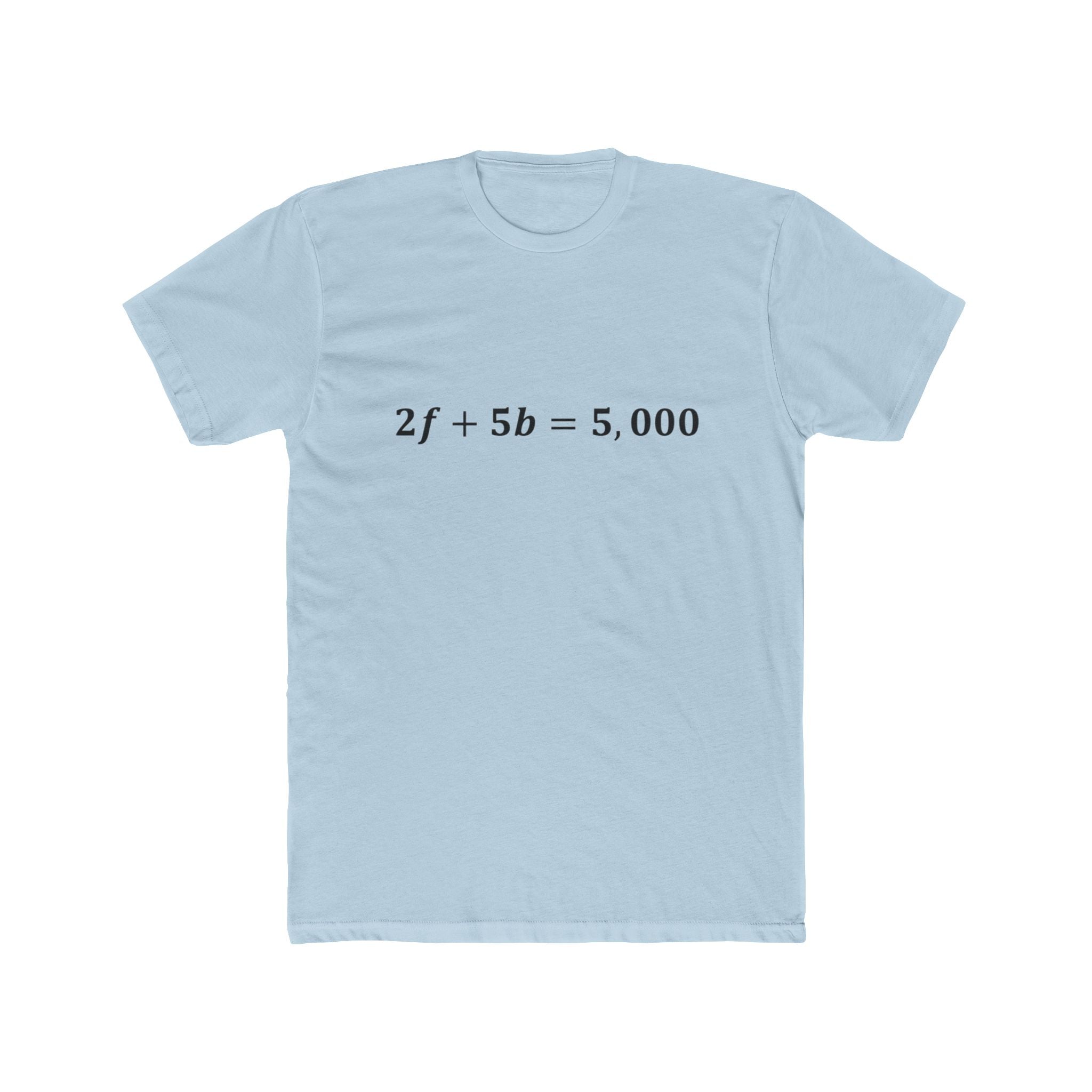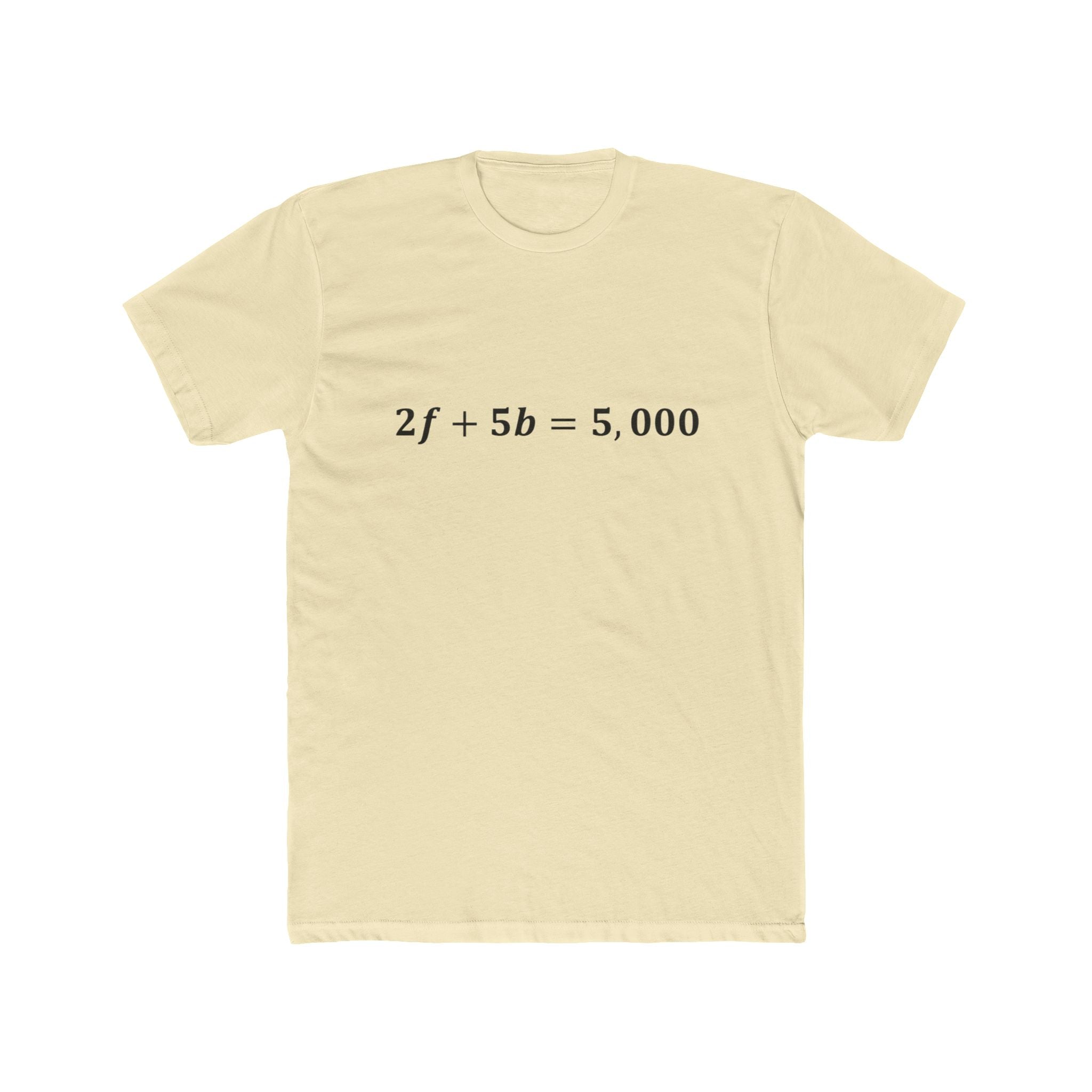 Light, simple, and quietly clever — this cotton crew tee wears like an everyday essential but speaks to anyone who loves numbers, puzzles, or a dry bit of humor. The front shows a neat, math-style equation printed in a subtle serif that invites a double-take. At the nape, a small supporter logo sits just under the collar, keeping the back minimal and balanced. The fabric is lightweight and breathable, so it layers easily under a jacket or stands alone on warm days. Wear it to study sessions, campus meetups, problem-solving nights, or casual weekends when you want your interests to do the talking without shouting.
